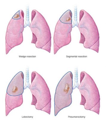 در طی جراحی ، جراح شما برای از بین بردن سرطان ریه و حاشیه بافت سالم کار می کند. روش های حذف سرطان ریه شامل موارد زیر است:
