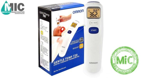 دمانسج غیر تماسی پیشانی از برند بسیار معتبر ژاپنی اُمرن omron جهت اندازه گیری دمای می باشد. دقت سنج این دستگاه 0.1 درجه سانتیگراد و نحوه ی سنجش آن لیزری می باشد که حتی از فاصله ی 3 سانتیمتری نیز وظیفه ی خود را به خوبی انجام می دهد. مضاف بر اینکه داری 25 مرتبه حافظه، هشدار دمای غیرمجاز و قابلیت خاموشی خودکار نیز می باشد. قابلیت بسیار خوب ترمومتر امرن 720 ضد آب بودن آن است. دماسنج پزشکی امرن 720 از باتری تغذیه می کند و طول عمر باتری آن 24 ساعت می باشد و قابلیت اندازه گیری دمای محیط نیز دارد.