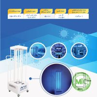 ابعاد دستگاه ضدعفونی کننده محیط 150 سانتیمتر ارتفاع و 40 سانتیمتر عرض دارد و با توجه به وجود چرخ براحتی می توان آن را جابجا کرد.